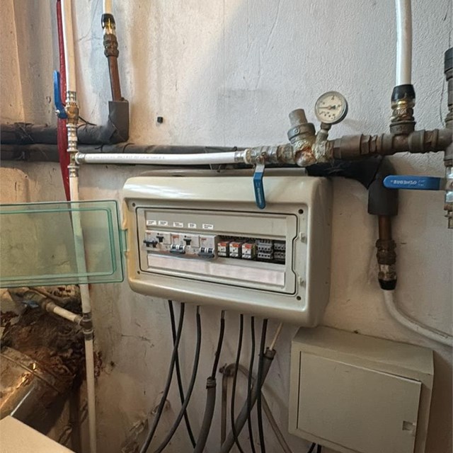 En esta obra, se hizo un cambio de mejora de caldera de gasóleo que trabajaba mediante una zona sola de calefacción y ACS. Por una bomba de calor de la marca Samsung R290. En el interior, por espacio, decidimos poner un depósito de ACS de 200 litros ya conjunto con depósito de inercia de 50 litros,