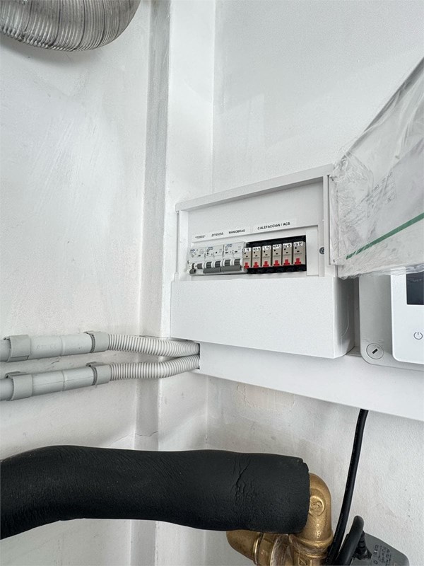 En esta obra se hizo un cambio de caldera de gasóleo por una aerotermia por bomba de calor marca SAMSUNG R-290 DE 8KW. Inercia de 80 litros y un acumulador de 200 litros para ACS los dos en acero inox. También se le realizó una limpieza del suelo radiante que es muy importante para la mejora del sistema y reducción de costes en factura etc. Obra realizada en Mera ( A Coruña)