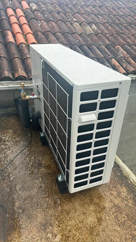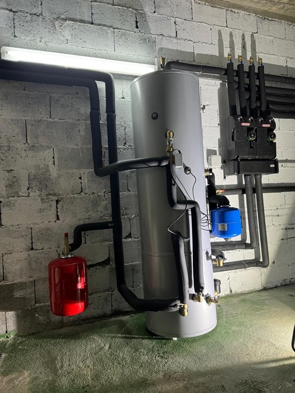 En esta vivienda de 1930 se apostó por una bomba de calor de la marca LG THERMA V. Monoblock, que incluimos una pequeña novedad para reducir algo también de espacio, con un acumulador de 200 litros de inox que trae integrado un inercia de 50 litros de la marca CLIMER. Todo esto trabajando para ACS y dos zonas de calefacción: Una de radiadores y otra con suelo radiante. Todo controlado por wifi. La obra se realizó en Vilar do Mato (Zas).